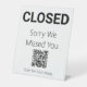 Closed Sorry We Missed You Business Hours QR Code Pedestal Sign