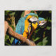 Closeup of gelbbrustara macaws on branch holiday postcard