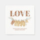 Complete your baby shower table setting with these charming boho-themed paper napkins. Featuring a watercolor clothesline with baby outfits, a teddy bear, and the phrase “Love on the Line,” this design adds a heartwarming and stylish touch to your celebration. Perfect for rustic, gender-neutral, or woodland baby shower themes.
