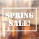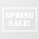 Ce graphique de cling de fenêtre "Spring Sale" est assez audacieux pour annoncer que votre entreprise est en vente. Avis de vente. Blanc sur arrière - plan clair.