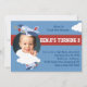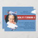 Take to the skies with this fun airplane birthday party invitation! It features one photo and bright primary colours with a bit or grey to compliment most party schemes.