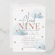 This elegant and modern "we're on cloud nine/9" boy baby shower by mail foil invitation features a white background with fluffy blue clouds in watercolor. The reverse side features a white background with geometric patterns in light blue. Personalize for your needs. You can find more matching products at my store.