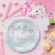Cloud baby shower template paper plates personalized tableware. Pastel grey watercolor clouds modern casual script baby shower personalized table decor template plates.