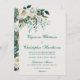 Cloud Dancer Forest Teal Script Floral Wedding Invitation