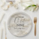Elegant watercolor beige calligraphy Baby Shower Paper Plates with title "We are On cloud nine".