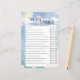 For further customization, email hi.yellowmoonatelier@gmail.com. Add some heavenly fun to your baby shower with this Cloud Nine Over Under Pastel Guessing Game from Yellow Moon Atelier. Featuring fluffy cloud of light and soothing pastel hues, this game invites guests to guess whether certain (personalized) baby-related facts are over or under a given number. It's a delightful way to engage your guests while celebrating the upcoming arrival. Coordinate with the Heaven Sent Baby Shower Collection for a joyful and cohesive event.