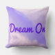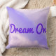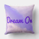 Coussin avec ciel lilas/lavande avec nuages lilas/lavande plus légers et texte violet "Dream On" (que vous pouvez customiser).