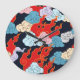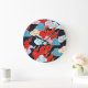 Clouds, Flames: Black Vintage Pattern. Large Clock