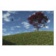 Un paysage 3D paisible au printemps ou en été, créé en Vue. Au sommet d'une colline recouverte d'herbe verte et de primroses colorées, contre un ciel bleu avec des éclats de nuages, un érablière japonais solitaire et un banc en bois sous lequel s'arrêter et se reposer. Un aigle solitaire sonne par le vent.