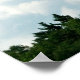 A photograph of a group of large white clouds floating over a grouping of trees.