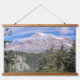 Decorate your living space with this horizontal, hanging wall tapestry with wooden tops that features a scenic, photographic image of spectacular cloud formations over snow capped Mount Rainier in the Pacific Northwest state of Washington. A stunning, landscape image!