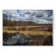 Un ciel dramatique se reflète dans l'eau calme avec les plantes et les arbres des zones humides.