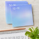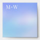 An 80s record album cover style envelope with a blue and white gradient with a feeling of clouds. The front of this square envelope includes your initials as a monogram. Customize your return address on the back flap. The ombre design covers the exterior and interior of the envelope. For round cards, such as the vinyl record album Save the Dates and Invitations from our Vinyl collection. Also works for square cards.