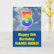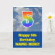 The front of this fun 5th birthday greeting card design features a cloudy blue sky depiction, along with the number "5" having a multicolored rainbow spectrum like gradient look. The front also features a birthday greeting message, including an editable recipient name. The inside features a customized birthday greeting message, or could perhaps be cleared and left blank if a message is to be written by hand instead. A personalized birthday card like this might be a fun way to send birthday wishes to somebody who is celebrating their fifth birthday. [~Z0000370]