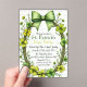 A festive St. Patrick’s Day–themed invitation featuring a clover wreath and decorative bow over soft stripes. This design is fully customizable, and the coordinating patterned artwork is printed on the back.
