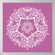 This white mandala sits on a soft, clover purple background. The colour is soothing and calm. Part of the Jarn Mandala Collection.