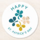 Clover Shamrock Drawing Happy St. Patrick`s day Round Paper Coaster