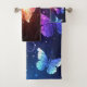Night glowing butterflies on a dark abstract background. Du beurre noir. Design avec du beurre.