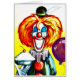 Une peinture acrylique d'un clown heureux tenant un tarte crème et un ballon pourpre.