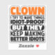 Funny Clown Sayings "Clown I Try To Make Things Idiot Proof But They Keep Making Better Idiots". Grab this Funny Clown design as a funny gifts for an awesome mom, dad or friend.