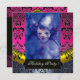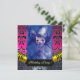 CLOWN IN PINK PURPLE, BLACK DAMASK MONOGRAM blue Invitation