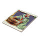 Looks like this clown is having all the fun on Halloween. This vintage Halloween print depicts a clown bobbing for apples with apples and a jester's marotte lining the image.