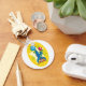 A clown standing on its head with some balloons around it. This design looks really effective on this Keychain