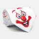 A cute and funny (or creepy and scary!) cartoon painted clown face pattern with a red nose.