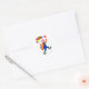 A sheet of stickers with a clown holding a bunch of coloured balloons and twirling a star on one finger, from a handpainted paper collage by Judy Adamson. One use for these stickers Greeting Cards and Invitations.