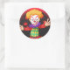 Sticker shown in a large round shape with a scary clown print.