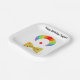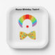 Celebrate in style with these bright rainbow-coloured clown themed birthday paper plates. They feature an illustration of a rainbow clown wig, red clown nose and yellow polka dot bow tie. These party supplies are ready to be personalized with your own message.