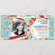 Clowns de cirque amusants sur pilotis, jonglant et tenant la carte d'anniversaire de ballons avec la photo en bleu, rouge, blanc et jaune avec les billets de tombola à côté. Il suffit de perforer les côtés pour une déchirure facile !