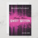 A funky, smeared hot pink background against rich black gives this Sweet 16 invitation the look of a nightclub or event flyer. Perfect for the teen and their friends who love the nightlife and to have a good time! A main message about the party prints at the top above the bright magenta grungy mass offseting their name and the words "Sweet Sixteen" rendered in an ornate typestyle. The image is reversed on the back of the invitation to display the party details. Available in alternate colours with matching products.