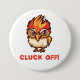 An angry looking chicken featuring the phrase 'cluck off' on a pin button