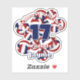 This team colours volleyball sticker for girls or boys features the image of a bunch of varied size red, blue and white volleyballs, upon which you can customize the player's name, jersey number, team name and mascot name - by katz_d_zynes