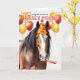 A fun birthday card for the lover of the Clydesdale horse breed featuring a great looking draught horse dressed up for a birthday party.