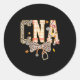 Cna Fall Plaid Leopard Bow Stethoscope Classic Round Sticker