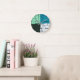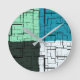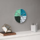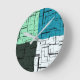 Coal White Teal Green Aqua Blue Modern Pattern Round Clock