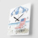 Add a touch of patriotic flair to your space with this beautifully illustrated square wall clock. Featuring a serene beach scene with a blue and white umbrella and an American flag-striped red, white and blue lounge chair. This clock blends coastal relaxation with timeless American pride. The soft watercolor design and minimalist numerals make it perfect for summer décor, beach houses, or anyone who loves Americana style.
