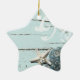 Coastal barn wood aqua blue starfish seashells ceramic ornament