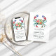 Invite your guests in style with this Floral Crab Nautical Rehearsal Dinner Invitation, featuring a beautifully detailed crab illustration adorned with soft botanical patterns. Perfect for beach weddings, coastal celebrations, and seaside events, this design blends elegant florals with charming nautical elements. Fully customisable with your event details, it’s a unique and sophisticated way to set the tone for your wedding weekend.