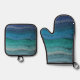 Coastal Beach Salty Waves On Black Oven Mitt & Pot Holder Set
