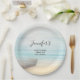Coastal Beach Scene with a Fishing Boat Shower Paper Plate