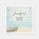Baby shower or other event paper napkins with a beautiful rustic image. Subtle colours of light blue, sandy brown and gentle white. A beach scene with a boat on the shore with a fishing net hanging off the side. An elegant shabby look.