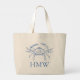 Coastal Blue and White Crab Monogram Large Tote Bag