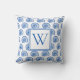 This preppy coastal inspired monogrammed pillow features seashells in classic blue and white. Personalize the monogram with your choice of initial.