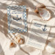 This coastal-inspired design combines watercolor florals with charming nautical elements like a dolphin, sailboat, compass, fish, starfish, and seagull. The elegant navy palette and soft painterly style create a whimsical, ocean-themed aesthetic—perfect for a seaside celebration full of charm and adventure.