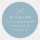 Round return address seal features your name and address in classic white lettering with a script accent, on a soft coastal blue background. Designed to coordinate with our Coastal Blue Fish wedding and event collection.