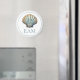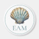 This beautiful monogrammed round magnet features a coastal scallop seashell in soft watercolor shades of blues and tans. Personalize the monogram with your choice of initials. Fun for personalized gift bags and party favours.