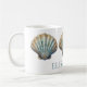 This beautiful personalized classic ceramic coffee mug features three coastal scallop seashells in soft watercolor shades of blues and tans. Personalize with your choice of name or special text. Great for personalized gift bags.